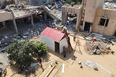 Notre expérience nous amené à constater que la mise à l’abri sous tentes était extrêmement précaire en terme d’isolation (froid, pluie, vent), d’espace, de possibilités de rangement, d’hygiène et d’intimité. Nous construisons donc des abris en bois avec ou sans sanitaires plus spacieux et confortables que des tentes.
